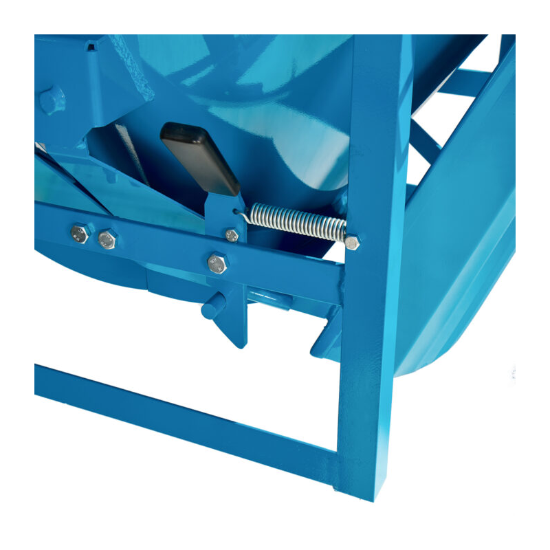 Lo scarico centrale bivalve azionato a leva consente un controllo accurato del flusso di calcestruzzo, utile nelle lavorazioni che richiedono precisione e continuità operativa.