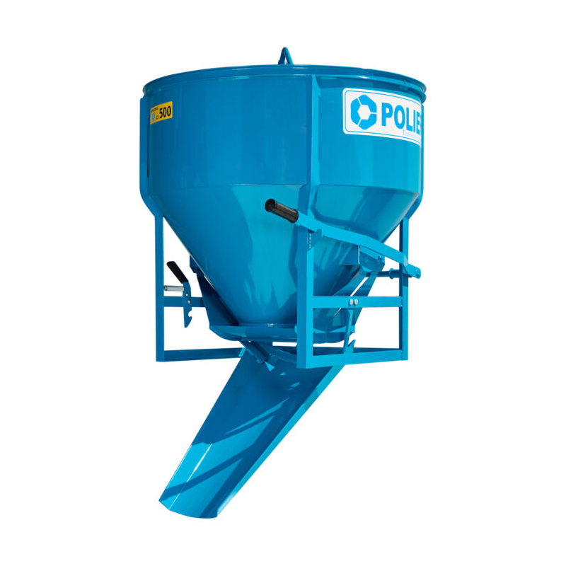 La benna conica Polieri modello 300 è pensata per ottimizzare le operazioni di getto del calcestruzzo in cantiere, offrendo una struttura robusta, uno scarico preciso e la possibilità di passare rapidamente dallo scarico centrale a quello laterale in base alle esigenze operative.